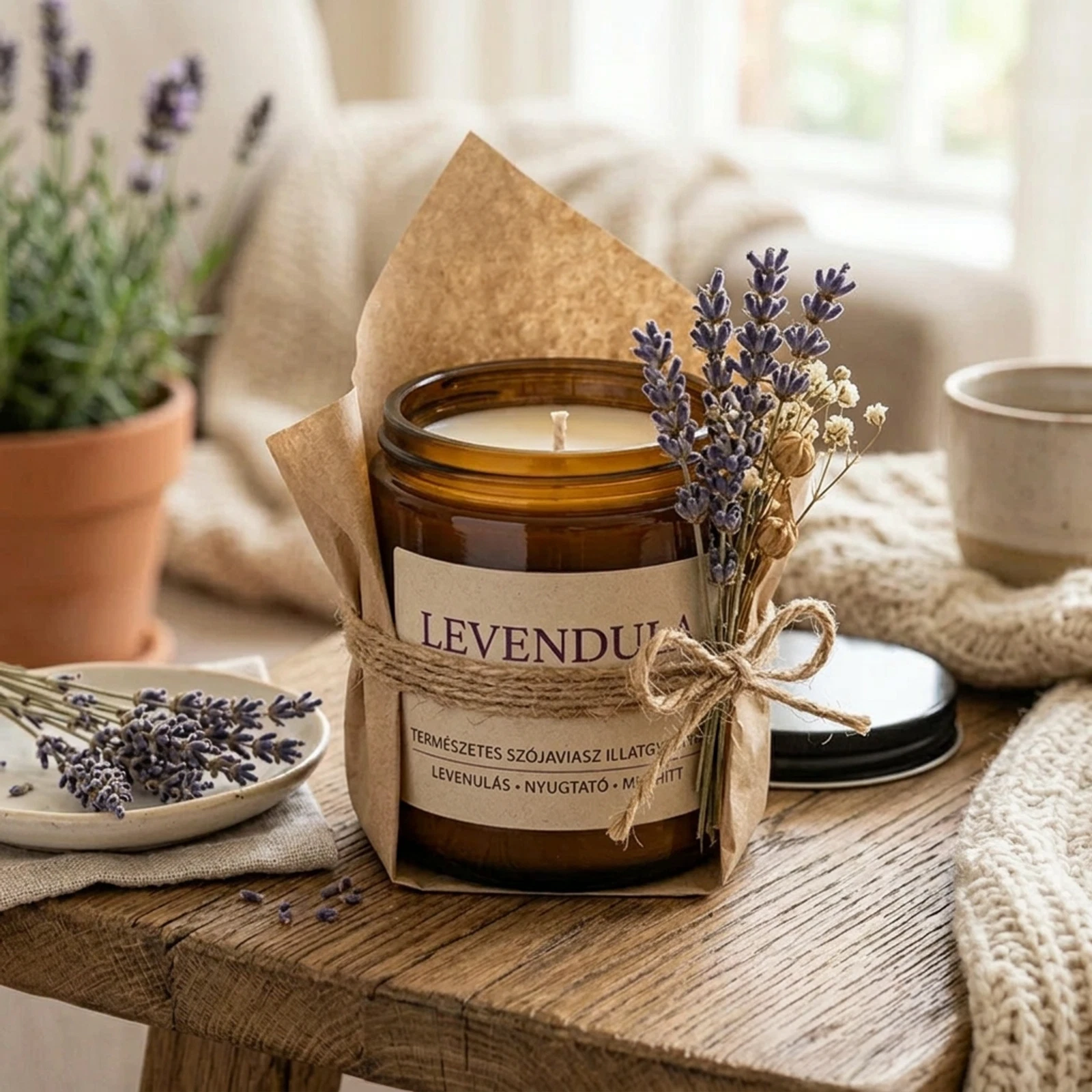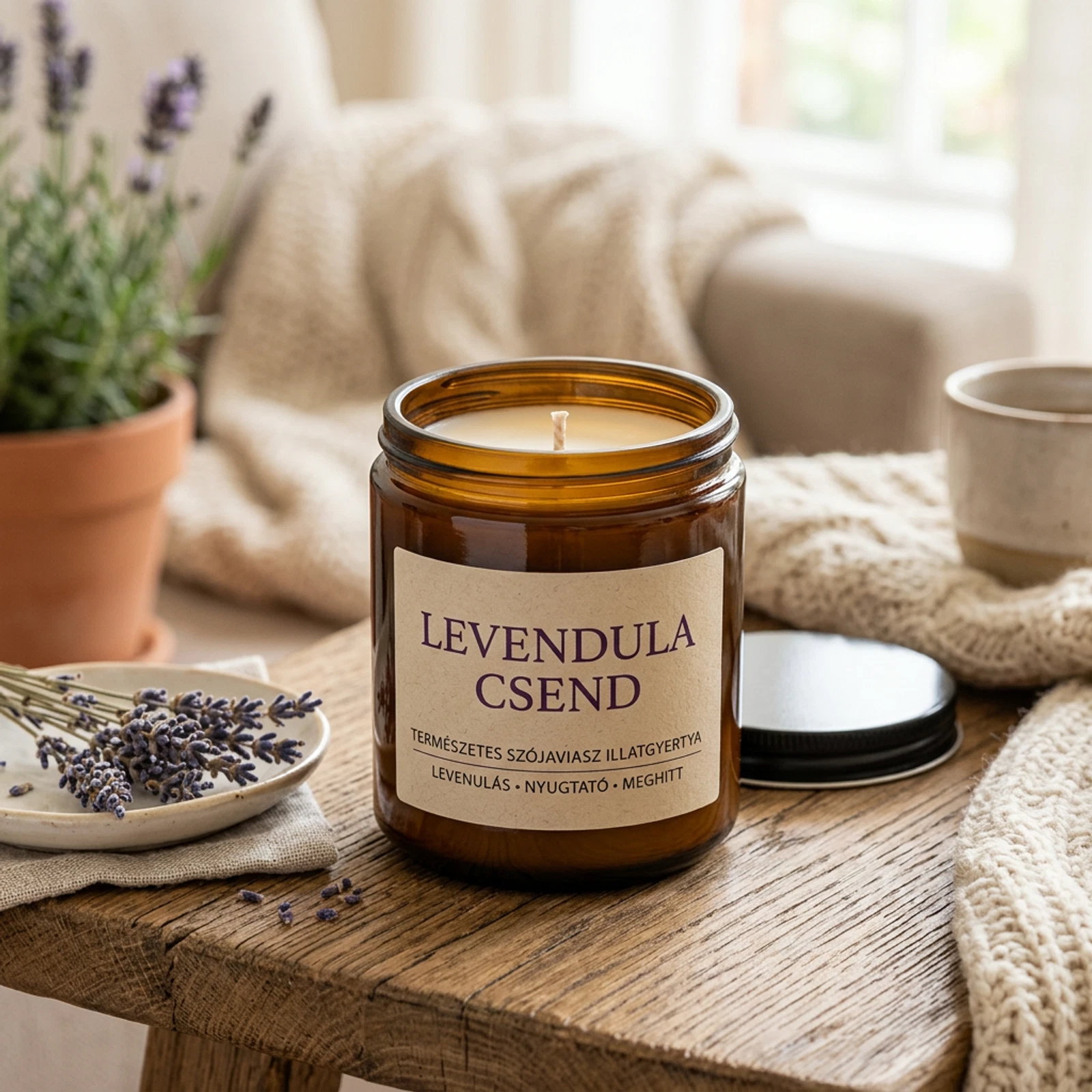 Vágysz egy kis nyugalomra a rohanó hétköznapokban? A Levendula Csend illatgyertya elhozza otthonodba a provence-i levendulamezők békéjét. Gondosan válogatott összetevőinek köszönhetően tiszta, természetes illattal tölti meg a teret, miközben lágy fénye meghitt hangulatot teremt. Ideális választás egy forró fürdő mellé, olvasáshoz vagy esti relaxációhoz. A gyertya egyenletesen ég, így hosszan élvezheted a levendula stresszoldó, nyugtató hatását. Prémium minőségű viaszból készült, hogy a környezetedet ne csak illattal, hanem pozitív energiával is megtöltse. Tedd a mindennapjaid részévé a csendet és a harmóniát ezzel a különleges illatgyertyával, vagy ajándékozd meg szeretteidet a kikapcsolódás élményével!