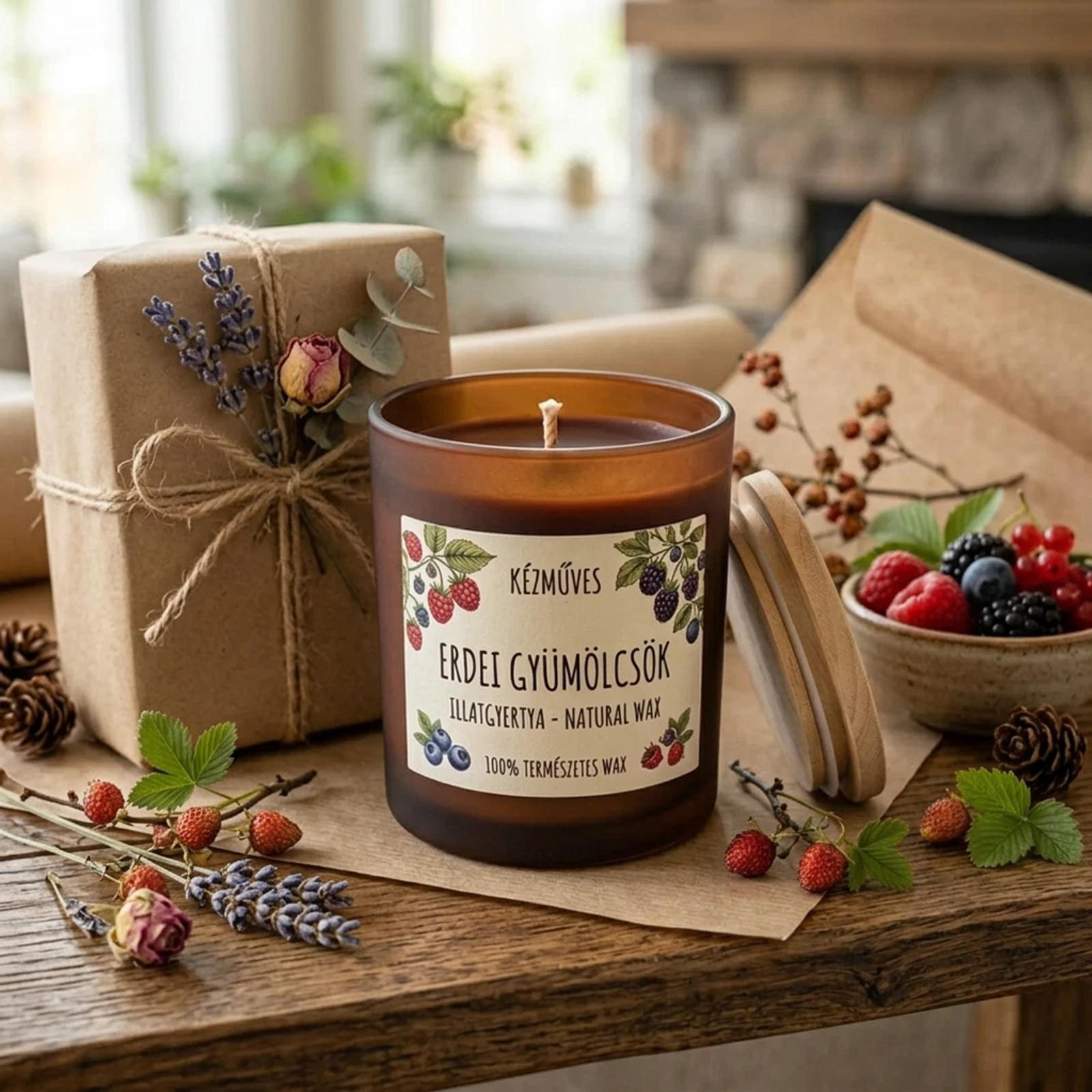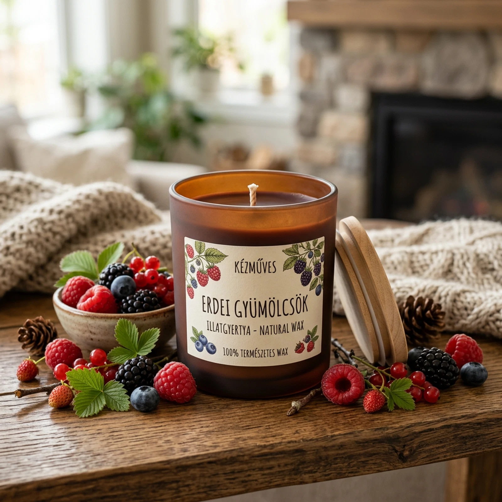 Hozd el a friss erdei gyümölcsök édes, üde illatát otthonodba ezzel a kézműves gyertyával. Teremts meghitt hangulatot pillanatok alatt!