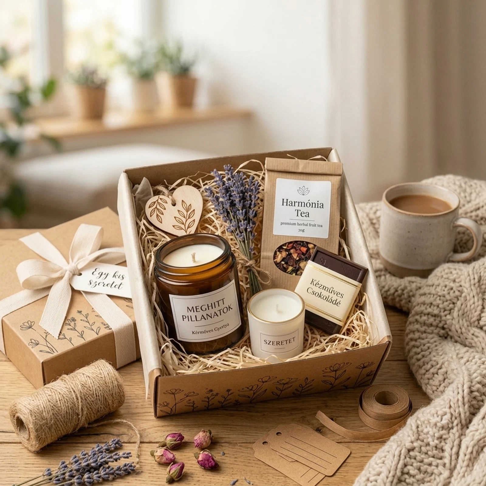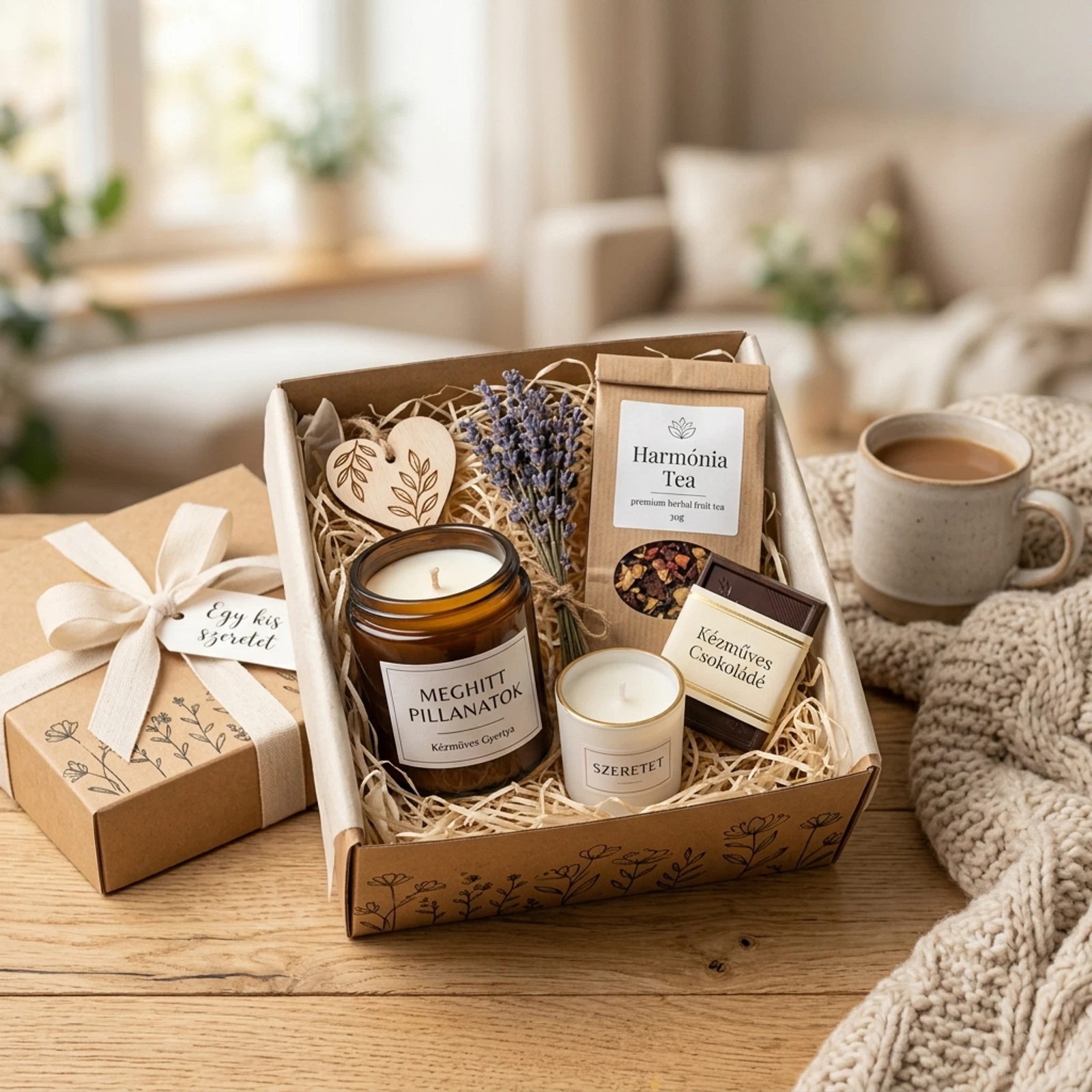 Lepd meg szeretteidet vagy önmagadat az Egy kis szeretet ajándékcsomaggal! Kézműves gyertyáinkkal és gondosan válogatott meglepetéseinkkel otthonos, meghitt pillanatokat varázsolhatsz bármelyik napba.