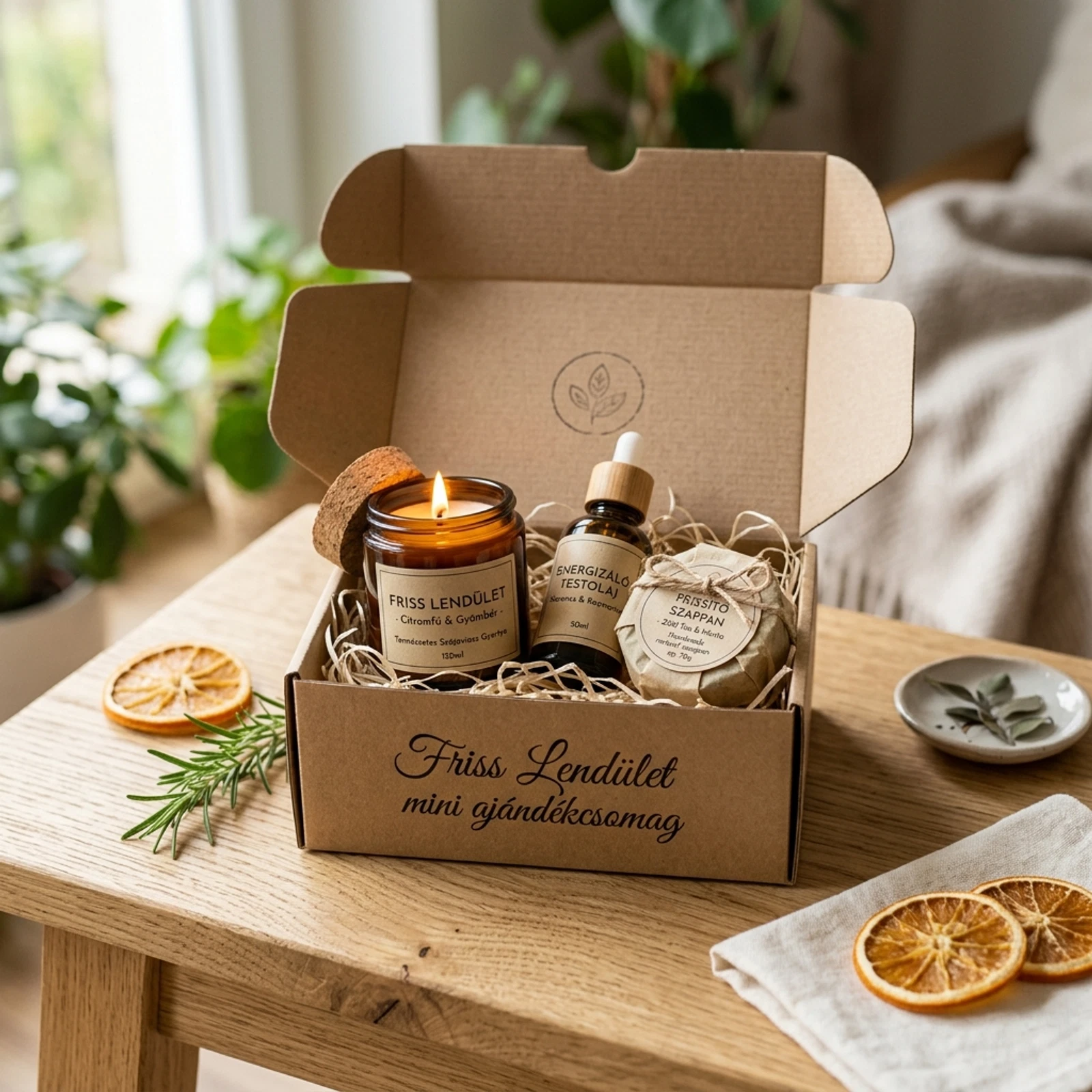 Fedezd fel a Friss Lendület mini ajándékcsomagot, amely egy csipetnyi természetes energiát és meghitt fényt csempész a mindennapokba. Tökéletes választás szeretteidnek vagy saját kényeztetésedre.